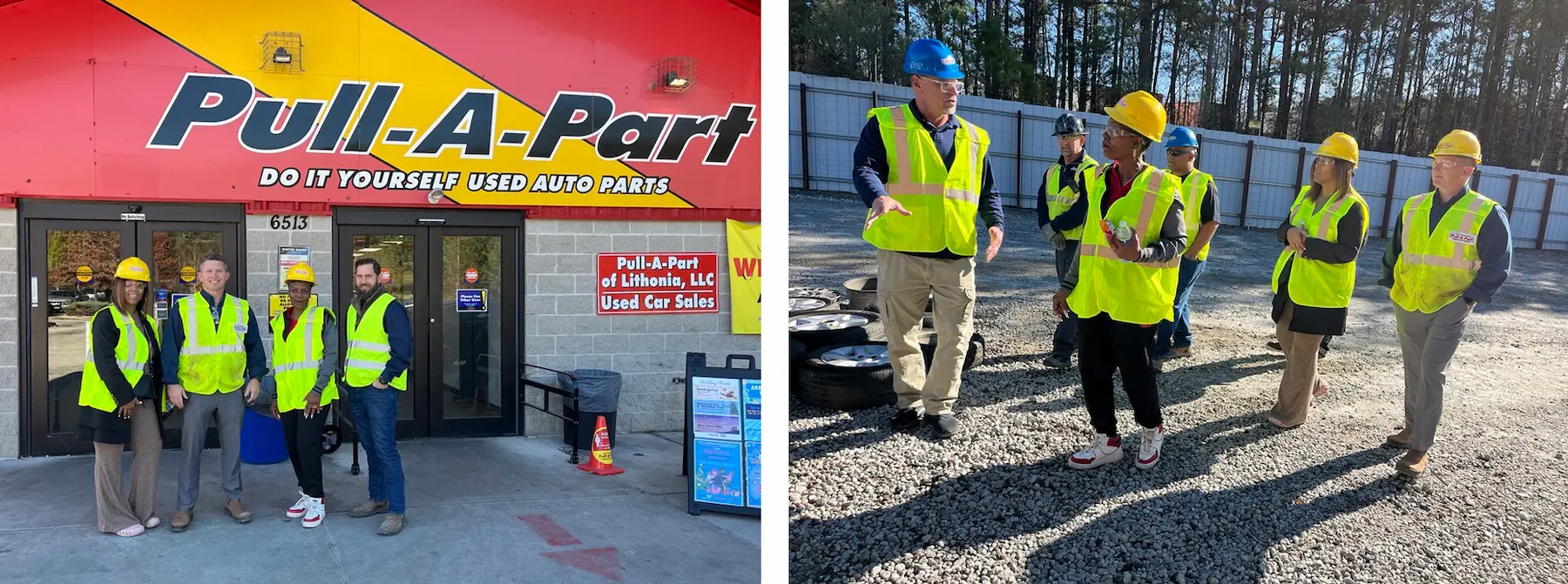 Pull-A-Part tiene el honor de acoger a la concejala Tara Graves y a la concejala Alecia Washington, representantes de los distritos 1 y 3 de Stonecrest respectivamente, en nuestras instalaciones de Atlanta East en Stonecrest, Georgia. Nos sentimos orgullosos de mostrar nuestro funcionamiento y de dar una visión en profundidad del servicio público que la industria del reciclaje de automóviles presta a las comunidades de todo Estados Unidos. Durante su visita, los miembros del consejo pudieron experimentar el recorrido de un vehículo fuera de uso desde el principio (la compra del vehículo) hasta el final (cuando el coche es aplastado). Pudieron ver de primera mano las medidas que tomamos para descontaminar el vehículo de sus peligros medioambientales, cómo gestionamos el proceso de desguace para eliminar los números de bastidor de la población activa de automóviles, la reutilización de piezas de automóvil para prolongar su vida útil y, por último, la eliminación responsable del vehículo. Pull-A-Part agradece el tiempo que han pasado con nosotros, y estamos especialmente agradecidos por su voluntad de visitar las numerosas operaciones en sus distritos para obtener una verdadera comprensión de cómo estas operaciones contribuyen a la mejora de Stonecrest.