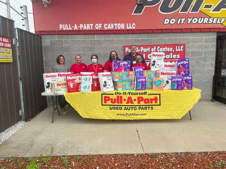 Por ejemplo, nuestro Pull-A-Part de Canton (Canton, Ohio) donó recientemente 700 dólares en calderilla para comprar pañales para The Stark County Diaper Bank, una organización sin ánimo de lucro que se asegura de que las familias no tengan que elegir entre comer o mantener a sus bebés con pañales limpios y frescos.