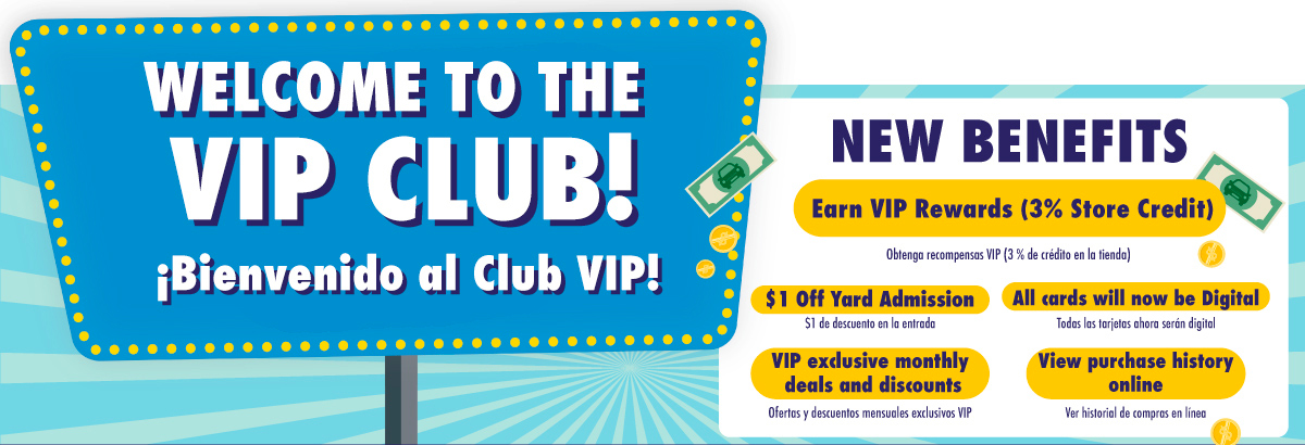 Want to make the most of every visit to the yard? Become a VIP Club Member today. Your benefits are good at all Pull-A-Part and U-Pull-&-Pay stores nationwide. Start earning VIP Rewards, save on yard admission, and gain valuable access to important purchase information online when you join.